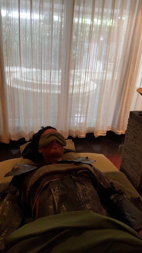 On the second day I had a 75-minute, full-body banana leaf massage. They massage you and then cover you in banana leaves to help draw out tension. For my Barbadian family, I now understand how a “conkie” feels. $450,000 rupiah to be a conkie (banana leaf wrap) = US$45.